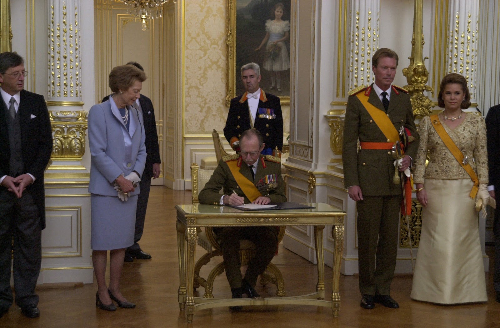 Hôtel de Ville of Nancy for the civil wedding. The ceremony was officiated by the mayor of the town, André Rossinot. After they formally tied the knot, the couple appeared on the balcony of the town hall to greet the onlookers; they were joined by a few family members like Archduke Christoph's godfather Grand Duke Henri and Grand Duchess Maria-Teresa.