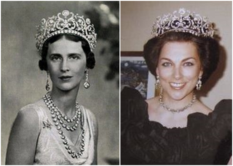 In 1923, Prince Paul married Princess Olga of Greece and Denmark, a sister of Marina, Duchess of Kent. It was her the tiara, made of white and yellow diamonds set in a floral design, is usually named for. It was also Princess Olga who added a diamond riviere to the base of the tiara making it appear more substantial. After Princess Olga's death in 1997, her oldest son Prince Alexander inherited the tiara. His second wife née Princess Barbara of Liechtenstein had already previously worn the tiara for a number of events.